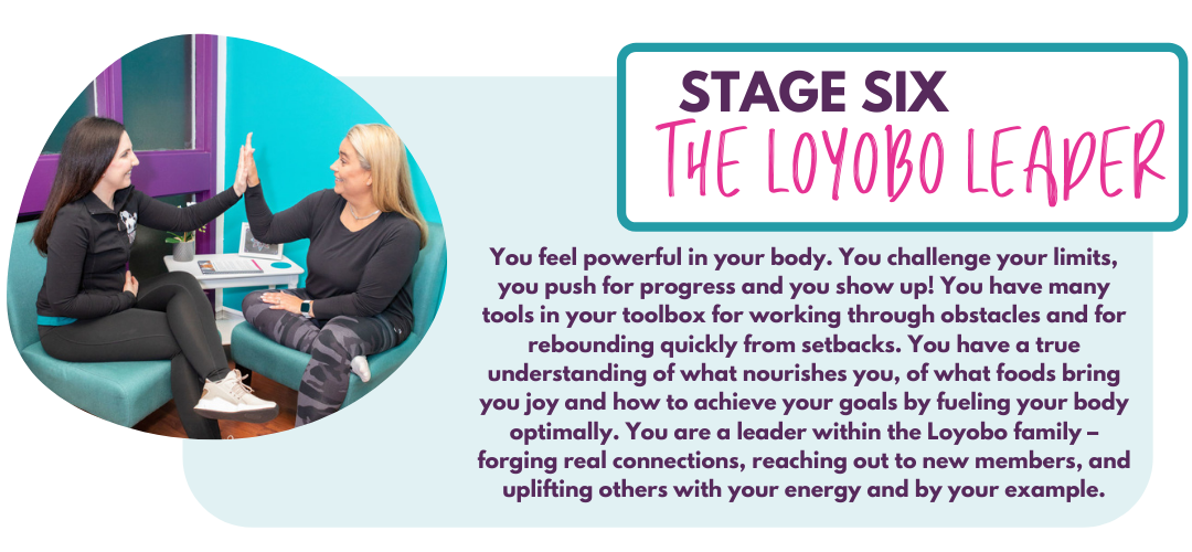 The Pathways to Self-Love and Success is broken down into 6 Stages – each stage representing progress in your knowledge and confidence when it comes to Loyobo FIT’s 4 pillars of Self-Love: Movement, Mindset, Nourishment, and Community. The 6 Stages are: